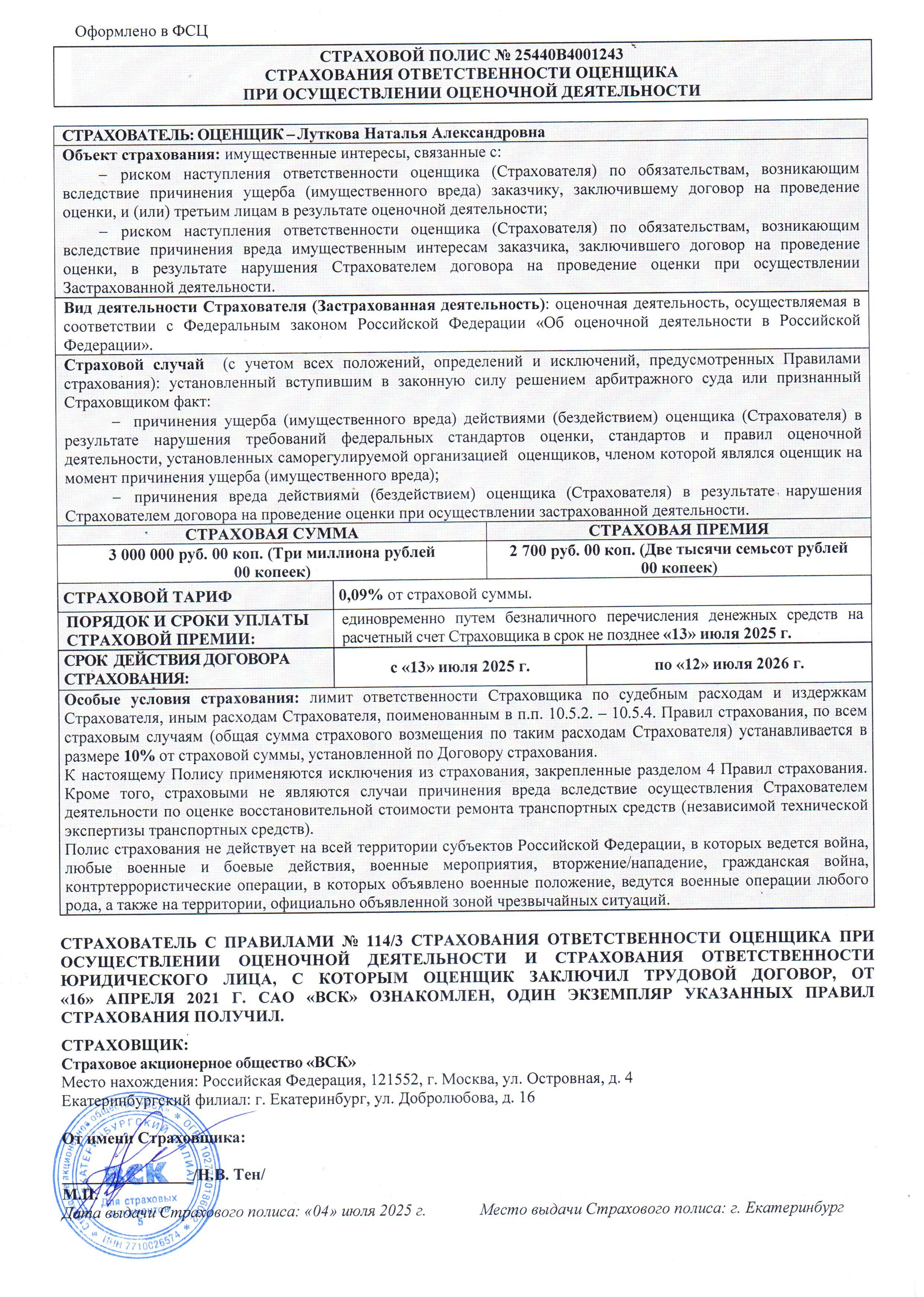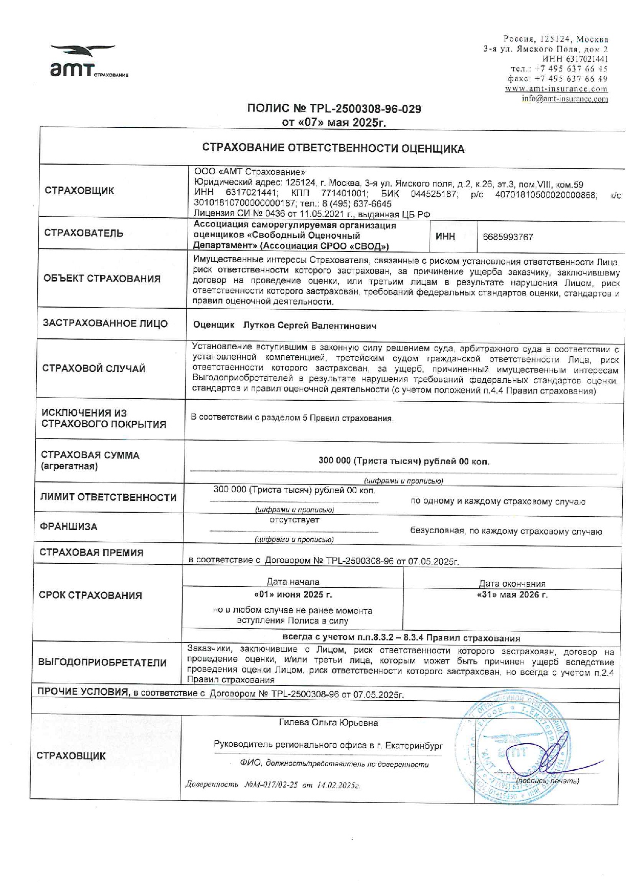 Страховка Лутков С.В. с 01.06.2025 по 31.05.2026